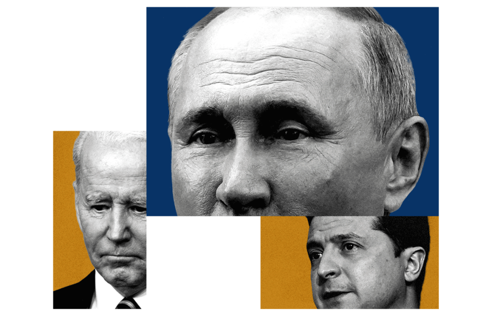 President Biden, Vladimir Putin and Volodymyr Zelensky. (Emily Sabens/The Washington Post; Alexander Zemlianichenko/AFP/Getty; Demetrius Freeman/The Washington Post; Andy Buchanan/AFP/Getty; iStock)
